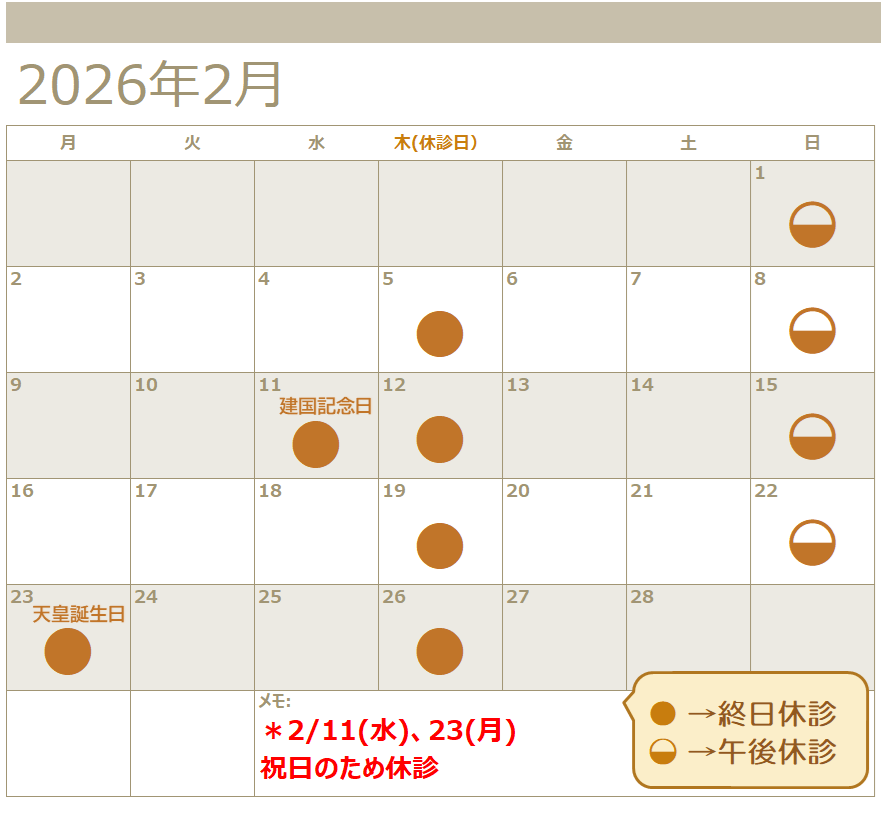 ★2/11(水)、23(月)祝日のため休診